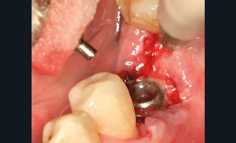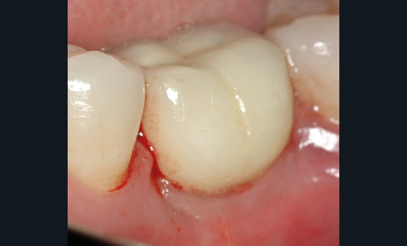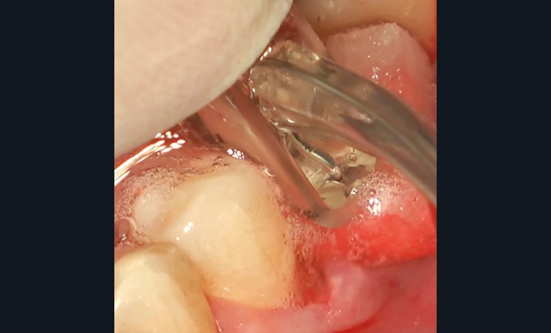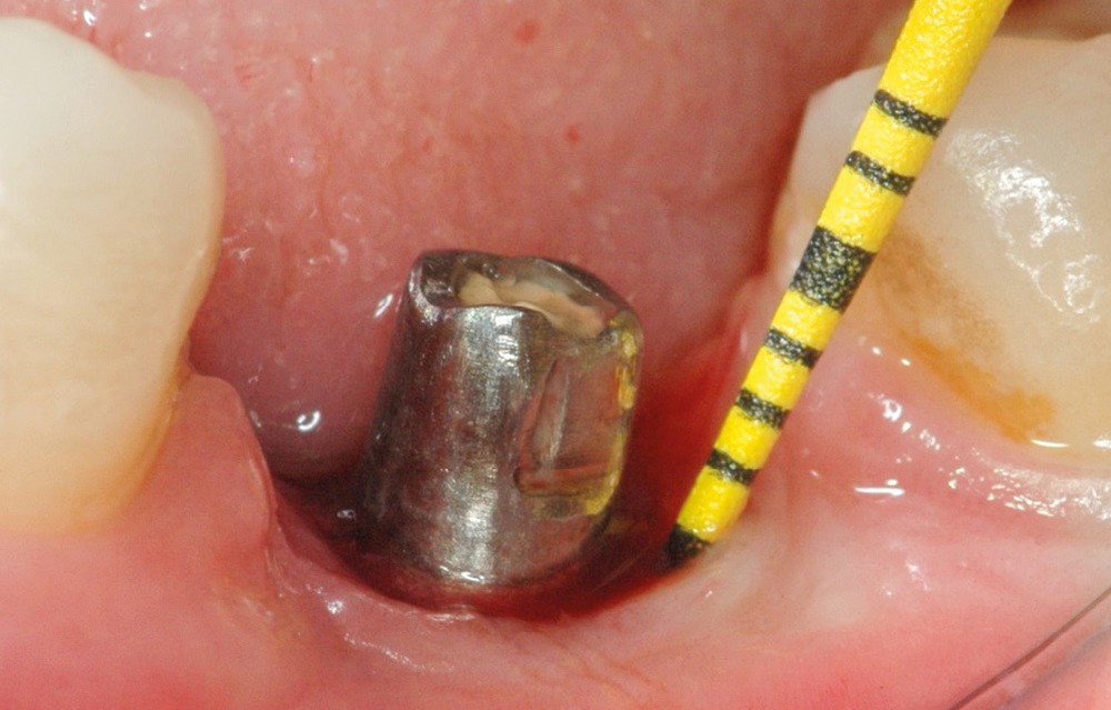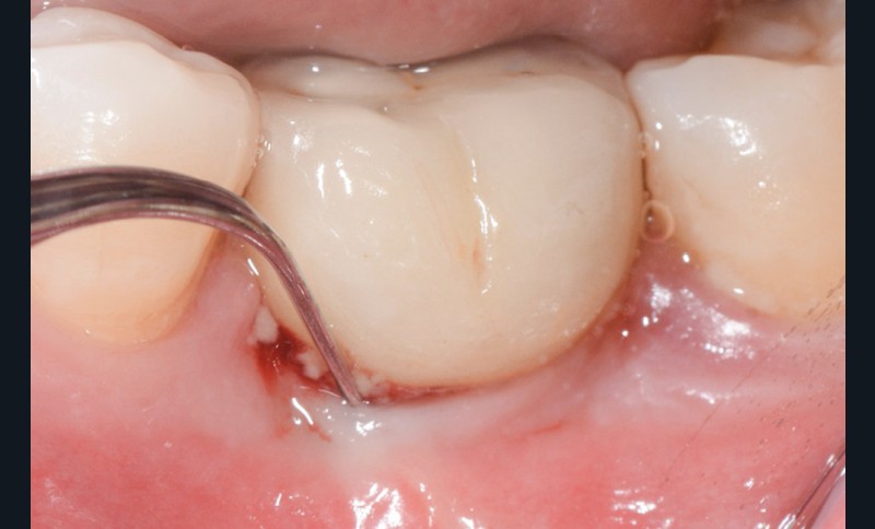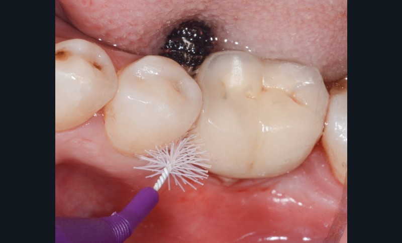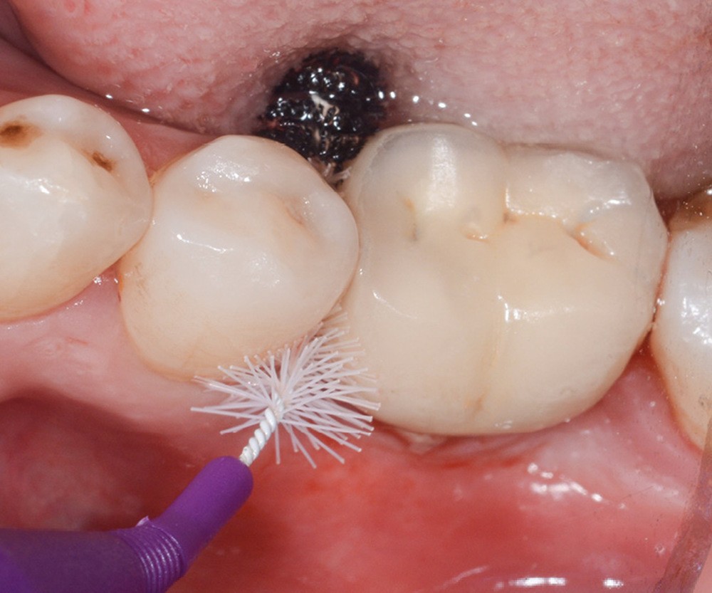 Chez ce patient, le traitement de la péri-implantite a comporté une chirurgie associant décontamination électrolytique de la surface implantaire, régénération osseuse guidée et enfouissement de l’implant. Le résultat à 2 ans est très moyen au vu du pourcentage de régénération osseuse obtenu. Comment peut-on prévoir un tel résultat alors que l’on a suivi les recommandations à la lettre, que l’on a utilisé les dernières technologies de décontamination, que l’on y a mis tous les moyens, que le patient est en bonne santé générale et qu’il vient en plus régulièrement aux séances de thérapeutique de soutien ? Le succès du traitement des péri-implantites n’est pas simple à obtenir, surtout quand un élément clé est compromis… la maintenance personnelle ! En effet le succès n’est possible que si le contrôle de plaque quotidien est optimal et, ici, ça n’était pas le cas. Le patient se brossait certes les dents, mais ne passait pas quotidiennement les brossettes, ce qui…