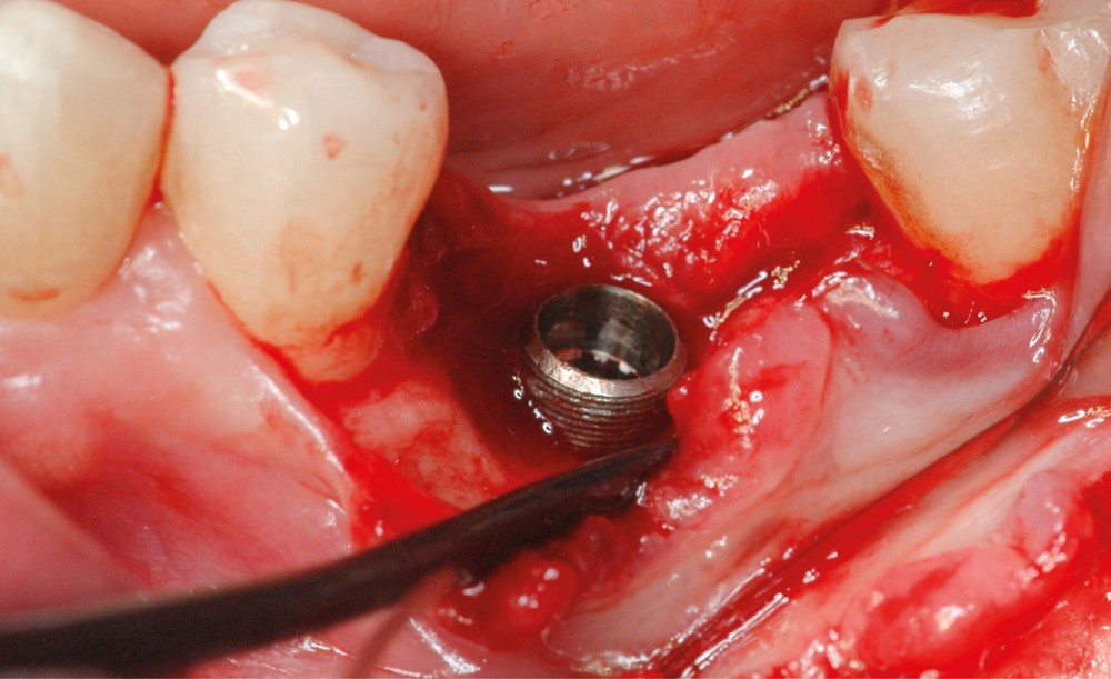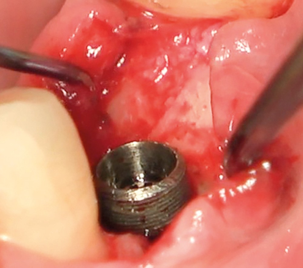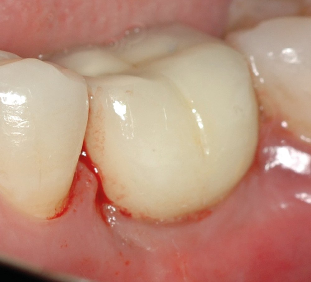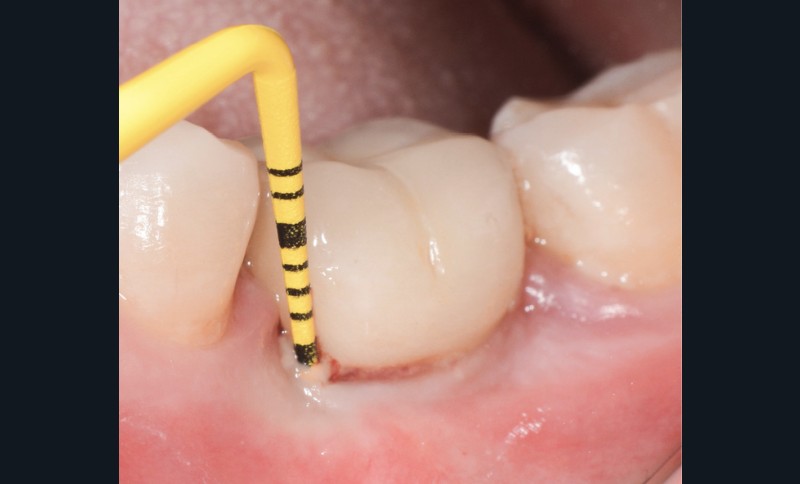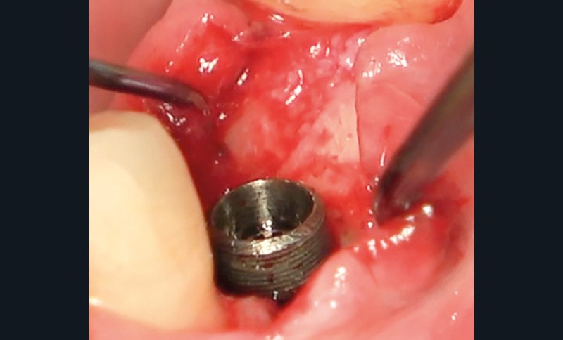 Chez ce patient, le traitement de la péri-implantite a comporté une chirurgie associant décontamination électrolytique de la surface implantaire, régénération osseuse guidée et enfouissement de l’implant. Le résultat à 2 ans est très moyen au vu du pourcentage de régénération osseuse obtenu. Comment peut-on prévoir un tel résultat alors que l’on a suivi les recommandations à la lettre, que l’on a utilisé les dernières technologies de décontamination, que l’on y a mis tous les moyens, que le patient est en bonne santé générale et qu’il vient en plus régulièrement aux séances de thérapeutique de soutien ? Le succès du traitement des péri-implantites n’est pas simple à obtenir, surtout quand un élément clé est compromis… la maintenance personnelle ! En effet le succès n’est possible que si le contrôle de plaque quotidien est optimal et, ici, ça n’était pas le cas. Le patient se brossait certes les dents, mais ne passait pas quotidiennement les brossettes, ce qui…