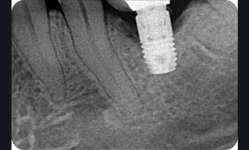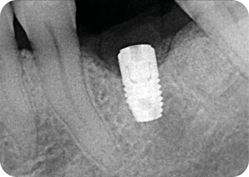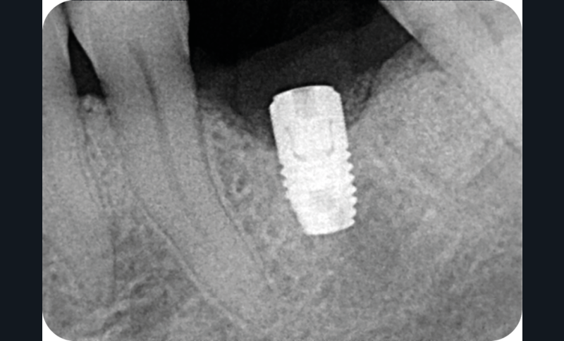 - Un implant posé en 2018 après la fin du traitement orthodontique