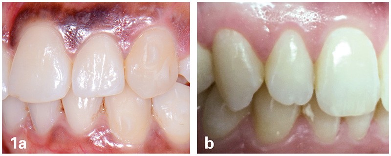 – soit une ligne droite telle que les limites gingivales des incisives centrale et latérale et de la canine soient au même niveau (fig. 1b).