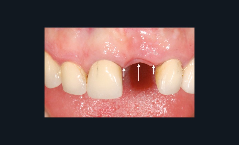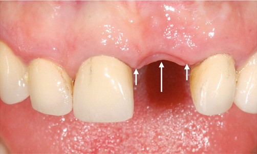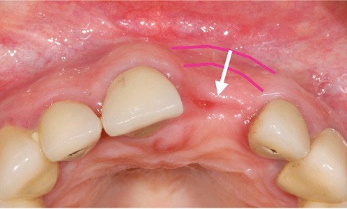 Lorsque la crête est déjà édentée, la résorption osseuse a déjà eu lieu et, en conséquence, la morphologie des tissus mous est altérée (fig. 1). Il faut alors utiliser des techniques d’augmentation osseuse et/ou muqueuse afin d’obtenir une architecture des tissus mous la plus naturelle possible.