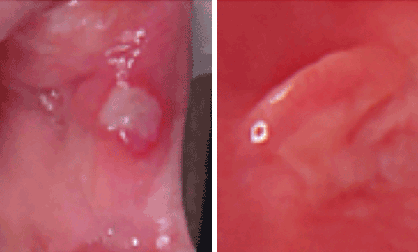 Histoire de la maladie. Les lésions avaient débuté 7 ans auparavant. Le patient avait eu des traitements antifongiques (amphothéricine B en bain de bouche) sans effet et, dans un but symptomatique, des traitements antalgiques et antipyrétiques (paracétamol) prescrits par son médecin traitant.