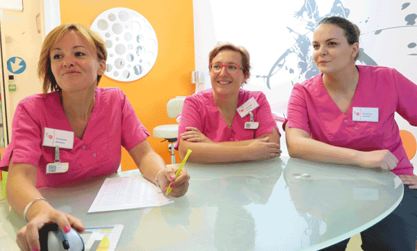 Grâce à la mini-réunion, les assistantes de clinique sont informées des problèmes de l’accueil. Exemple : le patient qui tarde à régler ou qui fait une remarque sur un éventuel retard (sachant que les patients n’ont pas toujours le même discours en clinique et à l’accueil). À l’inverse, les assistant(e)s