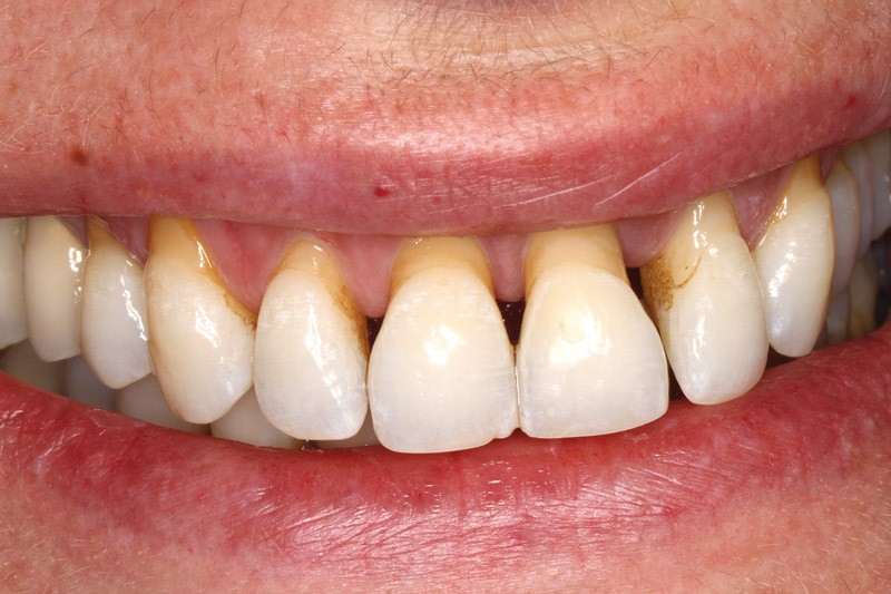 En revanche, lorsque la ligne du sourire est haute et que la perte osseuse n’est pas prononcée, comme c’est souvent le cas pour des patients en voie d’édentement complet, la LTPG risque de ne pas être dissimulée sous la lèvre supérieure. Pour éviter cette situation au rendu non esthétique (fig. 1), les implants doivent être apicalisés par rapport à la position des dents, de sorte à amener la LTPG en position sous-labiale.
