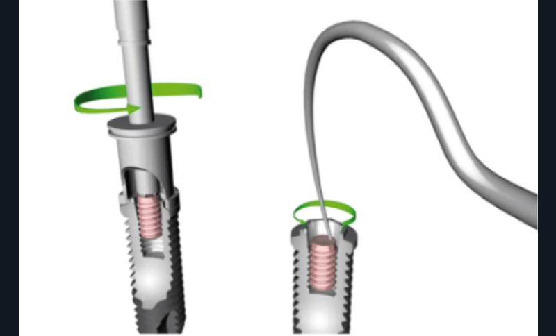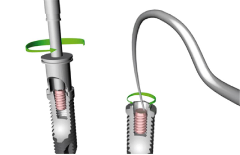 La localisation de la complication permet, le plus souvent, d’en évaluer la gravité pour le support implantaire. Ainsi, un problème superficiel, tel un éclat de céramique ou un descellement, ne met jamais en péril l’implant lui-même. En revanche, lorsqu’une fracture de vis survient dans le filetage interne, on peut être amené à déposer et remplacer l’implant si le fragment ne peut être éliminé ou si l’intervention a détérioré le filetage (fig. 1).