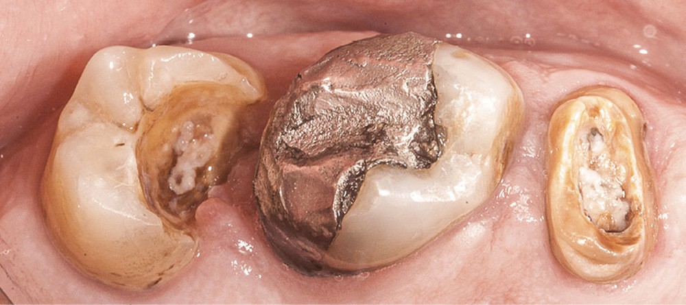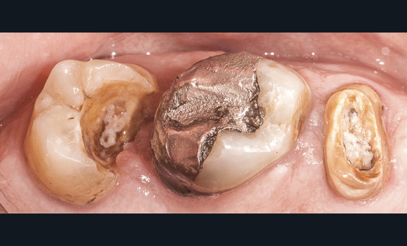 Jusqu’à une période encore récente, les solutions thérapeutiques adoptées lors de pertes de substance majeures faisaient appel à la mise en place d’une reconstitution corono-radiculaire directe (matériaux insérés en phase plastique, avec ou sans tenon radiculaire) ou indirecte (restauration métallique de type inlay-core) associée à une couronne périphérique [3]. Ces procédés ont été critiqués pour leur côté invasif augmentant encore la fragilité initiale de la dent, et susceptibles d’être à l’origine de fractures radiculaires et de difficultés de réintervention.