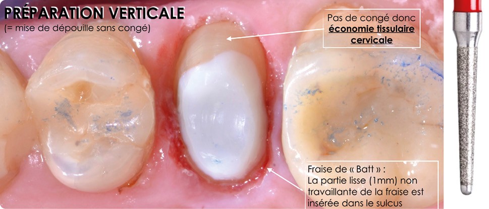 Ces formes de préparations ont pour principaux avantages l’économie tissulaire de la stratégique zone cervicale (rappelons que plus il reste d’émail et de dentine au niveau cervical, meilleur sera le pronostic de la dent [= effet de ferrule]), les préparations plus simples et rapides que la réalisation d’un congé et l’excellente réponse parodontale.