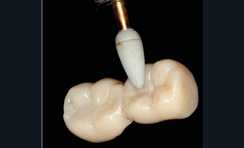 La zircone, dans ses différentes formes, devient un matériau incontournable en chirurgie dentaire. Ses propriétés mécaniques, associées à un poli de surface, permettent de réaliser des coiffes prothétiques pérennes et respectueuses des dents naturelles antagonistes. En clinique, les retouches occlusales ou d’émergence peuvent être nécessaires, elles doivent alors être suivies par un polissage soigneux et performant, soit par le chirurgien-dentiste, soit par le prothésiste.