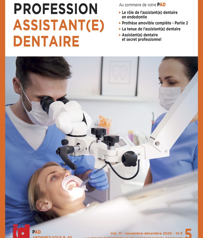 Pour mieux affronter ces nouvelles contraintes, rien de mieux que votre revue Profession Assistant(e) Dentaire ! Difficile d’être très glamour en surblouse, mais nous ferons le point sur les tenues de travail et le choix des couleurs, pour une ambiance plus sereine. Bien entendu, vous retrouverez vos rubriques habituelles d’actualités et de culture. Votre formation s’enrichira des articles sur la prothèse et l’endodontie, qui vous permettront de mieux assister votre praticien et les patients.