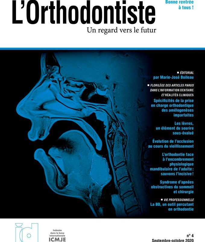 Comme chaque année, ce numéro de rentrée de L’Orthodontiste propose une petite excursion dans les revues non orthodontiques du groupe Information Dentaire, l’occasion de retrouver nos racines odontologiques mais surtout de voir des thèmes familiers abordés sous une approche différente, complémentaire. Le choix a été difficile car plusieurs sujets nous concernant (le SAOS, l’esthétique, l’amélogenèse imparfaite, l’occlusion) ont été développés dans des numéros à thème. Le comité de rédaction a sélectionné un article de chaque, mais nous vous recommandons vivement la lecture des autres articles de ces numéros, tous enrichissants. Une réflexion clinique très intéressante sur l’encombrement mandibulaire et l’extraction de l’incisive complète cette sélection.