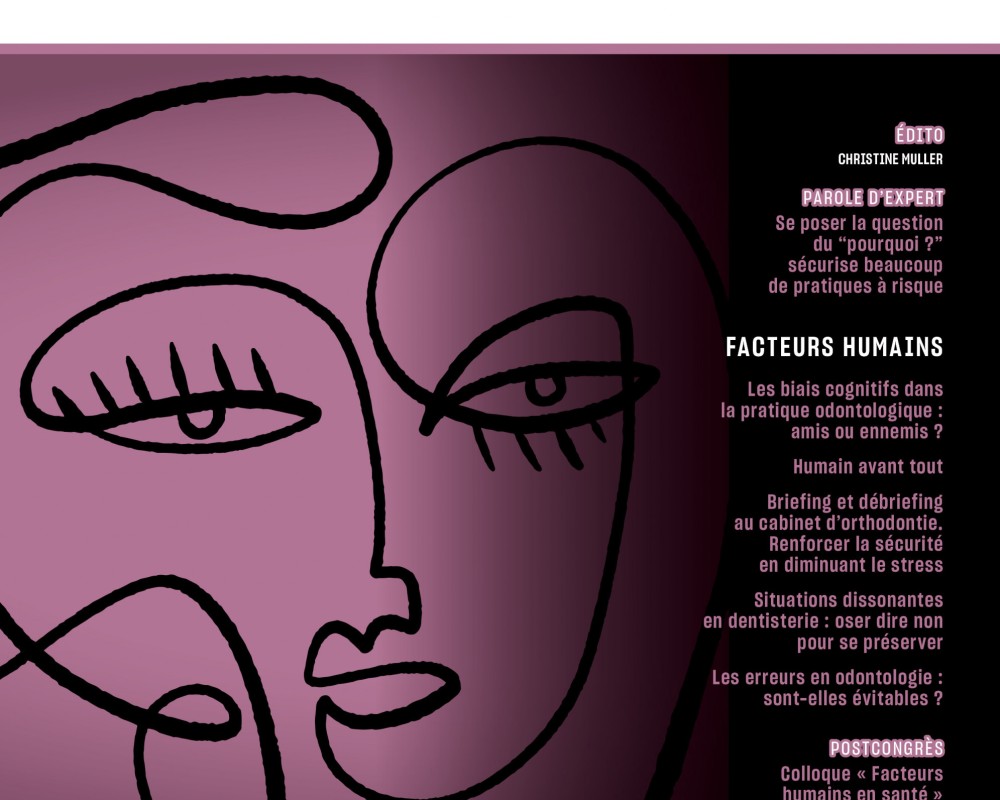 Julien Ramé recense les biais cognitifs dans la pratique odontologique, Sandy Lababidi et François Saliceti font le lien avec le quotidien d’un cabinet dentaire, Florence Roussarie explique comment le « briefing et débriefing » renforce la sécurité au cabinet dentaire. J’interviens pour ma part sur les « situations dissonantes au cabinet dentaire » et Philippe Milcent fait un focus sur « les erreurs en odontologie ». Enfin, Valérie Amzallag, dans la rubrique post-congrès, reviens sur le colloque « Facteurs humains en santé Toulouse – 2022 ».