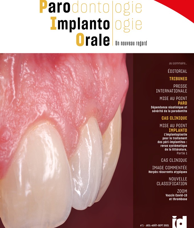Au fil de ce premier numéro, vous découvrirez la revue de presse internationale, qui aborde un sujet passionnant au cœur de l’actualité brûlante de la pandémie, des cas cliniques pratiques et didactiques, des mises au point abordant des notions incontournables de notre exercice, des images commentées pour apprendre à reconnaître des lésions infectieuses virales de la gencive, un zoom sur les vaccins anti-Covid et la thrombose… Aperçu d’un contenu qui, je l’espère, vous séduira et vous convaincra définitivement – mais ne l’êtes-vous pas déjà ? – que le parodonte est au cœur de la santé.