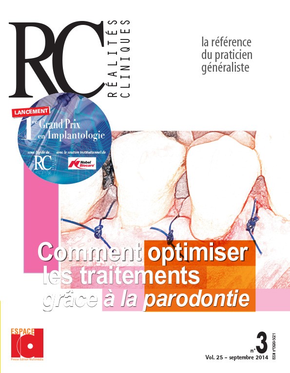 Dans son 3e numéro de l’année 2014, Réalités Cliniques vous propose de réfléchir sur une conduite sereine et performante des traitements parodontaux, en proposant aux praticiens des clés et des conseils avisés pour optimiser les résultats thérapeutiques au quotidien.