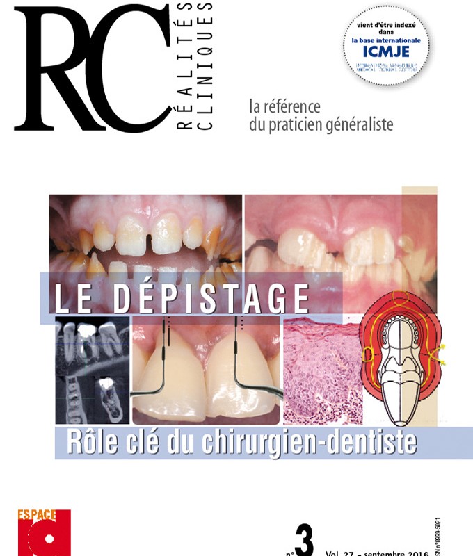 Au-delà de son rôle évident dans le maintien de la santé bucco-dentaire, l’omnipraticien se doit aussi de participer au dépistage de nombreuses maladies ou habitudes nocives. Ce numéro vous offre une mise à jour la plus exhaustive possible sur les clefs d’un dépistage réussi !
