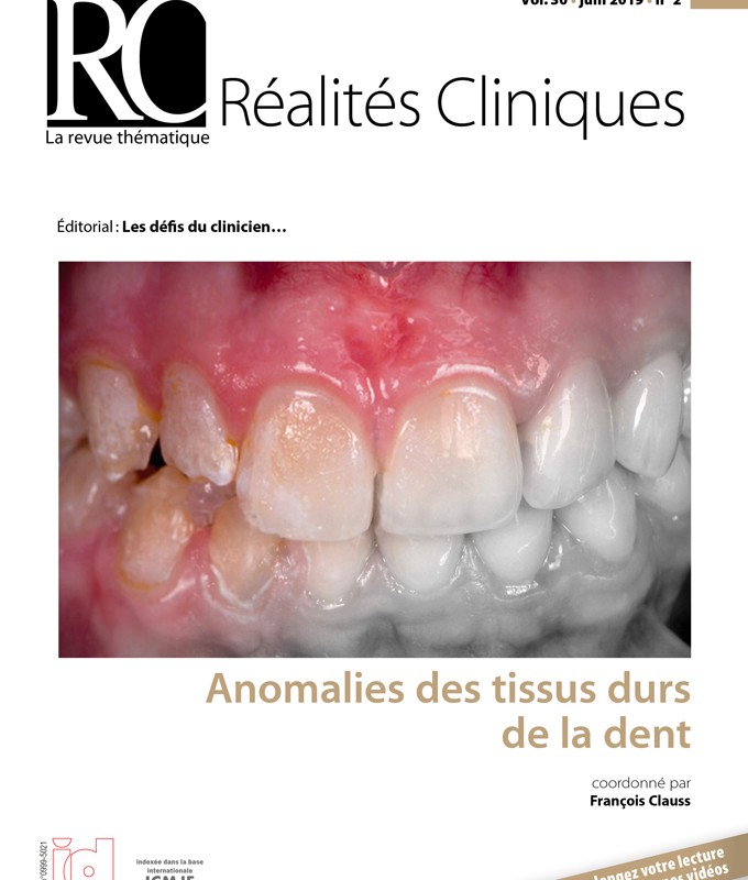 Sur le plan plus clinique, les réhabilitations conservatrices et prothétiques des anomalies amélaires et dentinaires sont complexes ; elles doivent être mises en place précocement et bénéficient grandement des techniques actuelles de CFAO, que ce soit en cours de croissance ou chez l’adulte. L’objectif de ce numéro spécial est de proposer un large panorama de ces différentes anomalies, et d’aider le clinicien à les diagnostiquer et les prendre en charge.