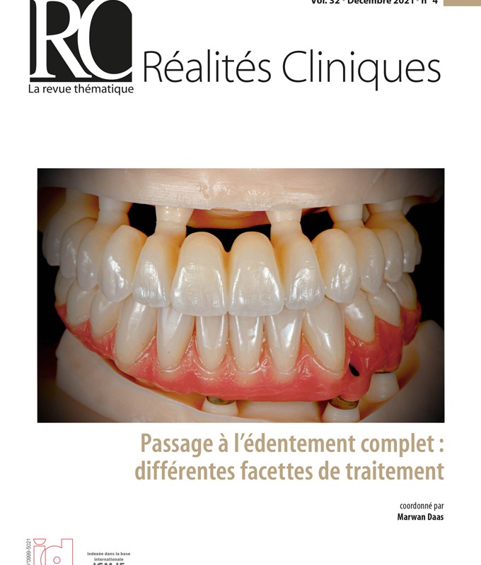 Pour allier recul scientifique, expérience clinique et flux numérique j’ai réuni dans ce numéro de Réalités Cliniques des seniors et des jeunes praticiens, afin de démocratiser cette thérapeutique clinique, permettre aux praticiens de traiter un nombre croissant d’indications, avec toujours plus de prévisibilité, et offrir aux patients une « troisième dentition » esthétique, fonctionnelle et durable.