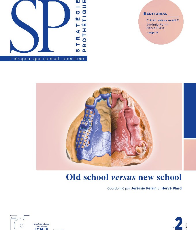 Forts des retours enthousiastes des participants à la formation, nous avons proposé au comité de rédaction de Stratégie Prothétique de reprendre ce thème pour un numéro spécial. Nous avons donc demandé à des auteurs reconnus pour leur expertise de traiter un sujet sous cet angle. De nombreuses thématiques sont abordées, avec, à chaque fois, la question du choix du protocole : ancien ou moderne ? Chaque point de vue est particulièrement pertinent et permet si nécessaire la « remise en cause » de nos pratiques.