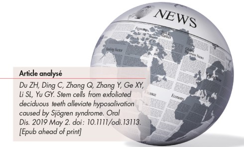 Article analysé Du ZH, Ding C, Zhang Q, Zhang Y, Ge XY, Li SL, Yu GY. Stem cells from exfoliated deciduous teeth alleviate hyposalivation caused...