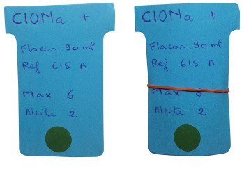 1. Fiche T. La couleur de la fiche indique le fournisseur habituel.Le nom du produit est mentionné (ici ClONa plus) :...Gestion des stocks en route vers la traçabilité !