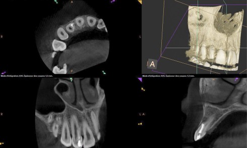 Retraitement endodontique à travers un bridge : apport de la 3D