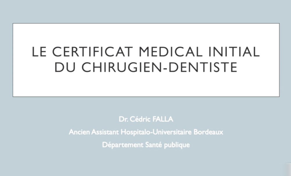 Ce mois-ci, le Dr Cédric Falla aborde : Le certificat médical initial du chirurgien-dentiste