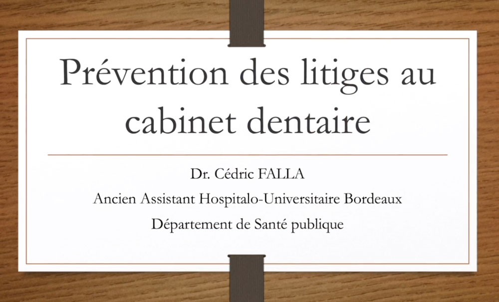 Ce mois-ci, le Dr Cédric Falla aborde : La prévention des litiges au cabinet dentaire